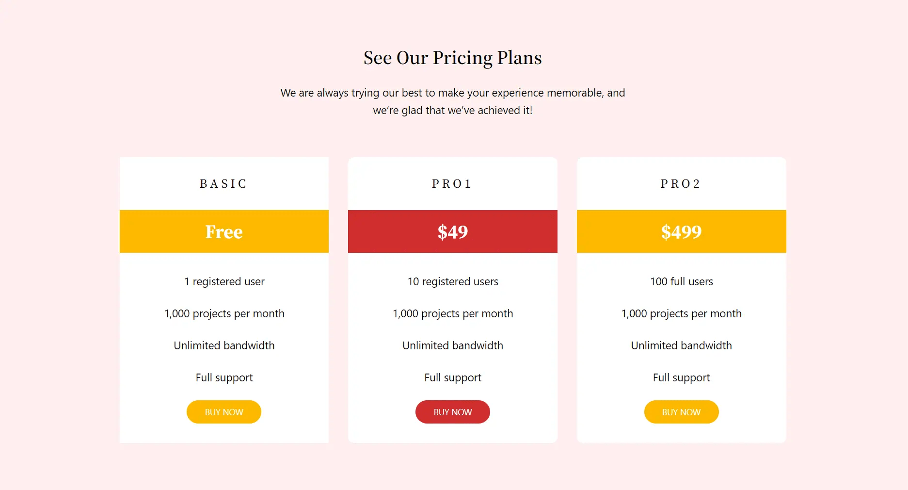 Grid 3 columns – Pricing table, entrance animations