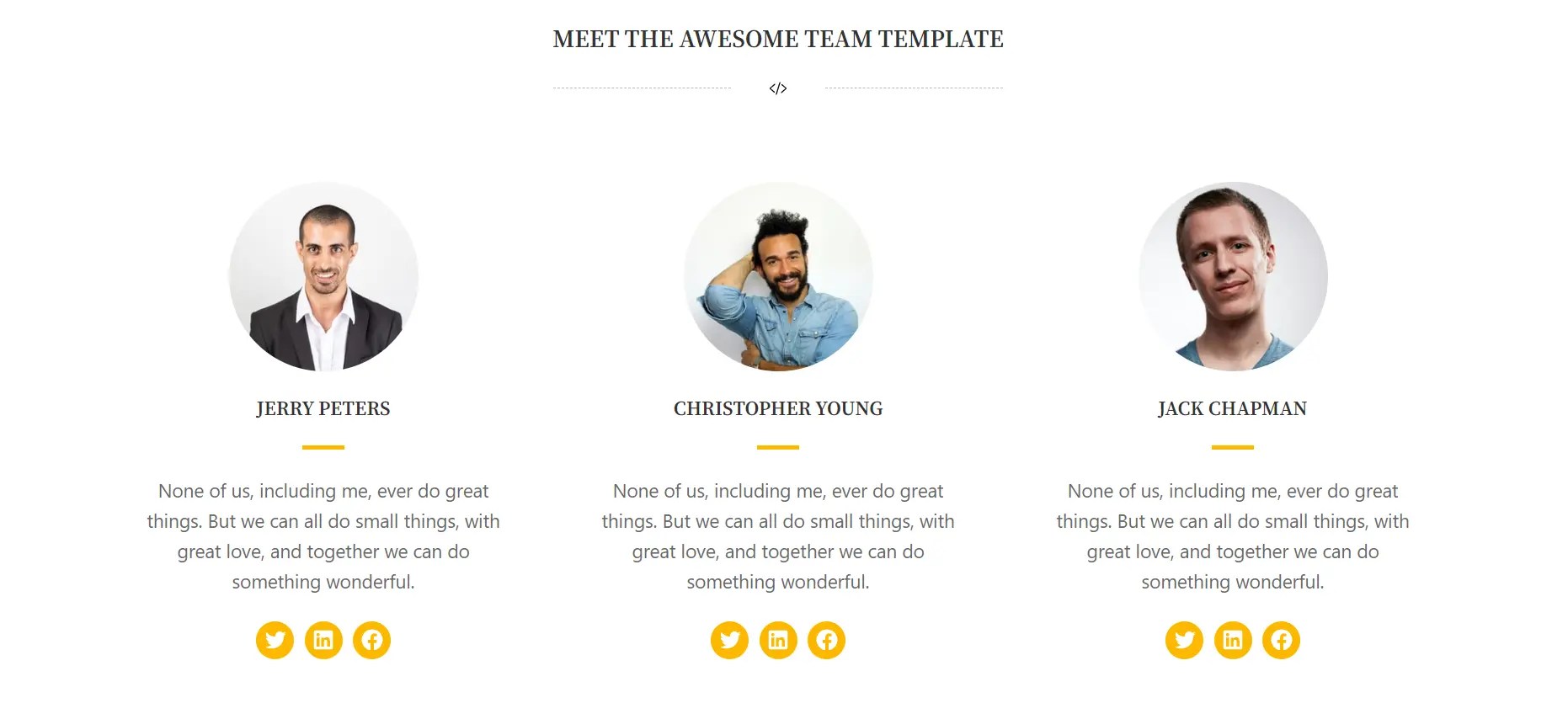 Grid 3 columns – team member, image text card, social links